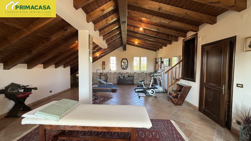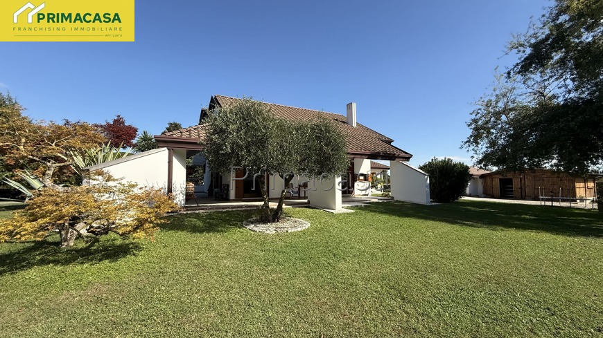 NOSTRA ESCLUSIVA. Proponiamo in vendita elegante villa indipendente dalle spaziose metrature immersa in 4500 mq di parco. La soluzione si sviluppa su tre livelli abitativi. Al piano terra, dopo un porticato di 50 mq, troviamo ingresso, zona living illuminata da una splendida luce naturale, e proseguendo una spaziosa cucina abitabile e bagno appena ristrutturato dotato di tutti i comfort moderni. Passando al reparto notte: due camere matrimoniali di cui una con poggiolo vista giardino, una camera singola e un bagno. Al piano primo una mansarda da sogno travata a vista di 50 mq perfetta per una zona fitness/svago oppure per un' immensa camera padronale con cabina armadio. Presente anche un ripostiglio di 40 mq. Al piano interrato una magnifica taverna dalle generose metrature, composta da cucina con caminetto in mattoni a faccia vista per le vostre grigliate e cene in famiglia e una zona relax con angolo bar per godersi a pieno le serate tra amici; locale tecnico con caldaia. Adiacente alla villa è presente un appartamento, completamente indipendente, perfetto per un secondo nucleo familiare, così composto: Ingresso con soggiorno, cucina separata abitabile, una camera matrimoniale, una camera singola ed un bagno. A completare questa proposta un garage quadruplo con finiture in legno di noce e una cantina di 20mq ottima per dare riposo ai vostri vini; uno splendido giardino di 4500 mq, curato in ogni minimo dettaglio con splendide aiuole colorate, alberi immensi e olivi di pregio, contornato da una folta ma ben curata siepe per fornire la giusta privacy.