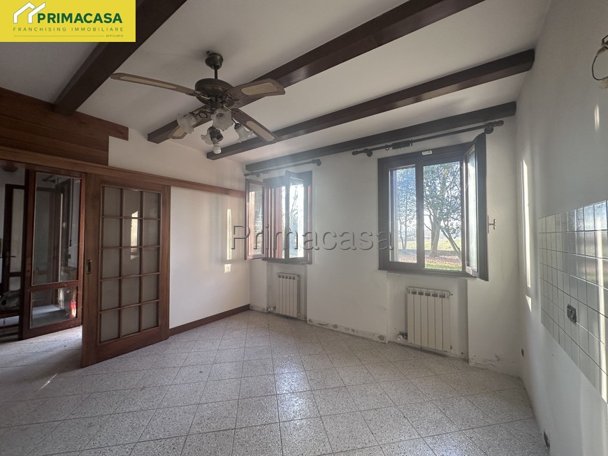 Nostra esclusiva. Proponiamo in vendita porzione di bifamiliare a Caltana. La soluzione si sviluppa su tre piani. Al piano terra ampio soggiorno con doppio accesso al giardino, cucina separata e bagno finestrato. Al piano superiore camera matrimoniale con terrazza, due camere singole molto luminose, secondo bagno finestrato. Al piano interrato garage singolo e ulteriore vano da poter adibire a taverna o magazzino. A completare un giardino piantumato di oltre 1000 mq. A pochi passi dal centro di Caltana questa soluzione è ideale per chi cerca ampi spazi abitativi in posizione tranquilla ma comoda a tutti i servizi.