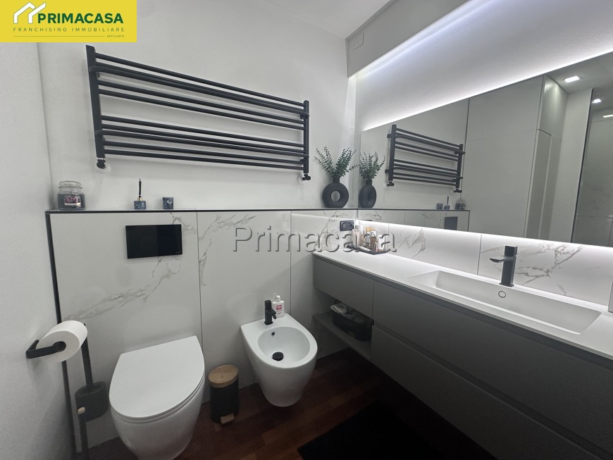 Nostra esclusiva. Proponiamo in vendita elegante appartamento su due livelli a pochi passi dal centro di Villanova. La soluzione, al primo piano in palazzina di sole sei unità, è composta da: ampia zona living con balcone, cucina separata, bagno finestrato e camera matrimoniale. Al piano superiore piccolo disimpegno, due camere, un bagno, terrazza. A completare un comodo vano sottotetto da utilizzare come ripostiglio, garage doppio e posto auto. L'immobile è stato oggetto di importanti ristrutturazioni negli ultimi tre anni, presenta finiture di alto pregio e moltissimi comfort e viene consegnato completamente arredato. Basse spese condominiali.