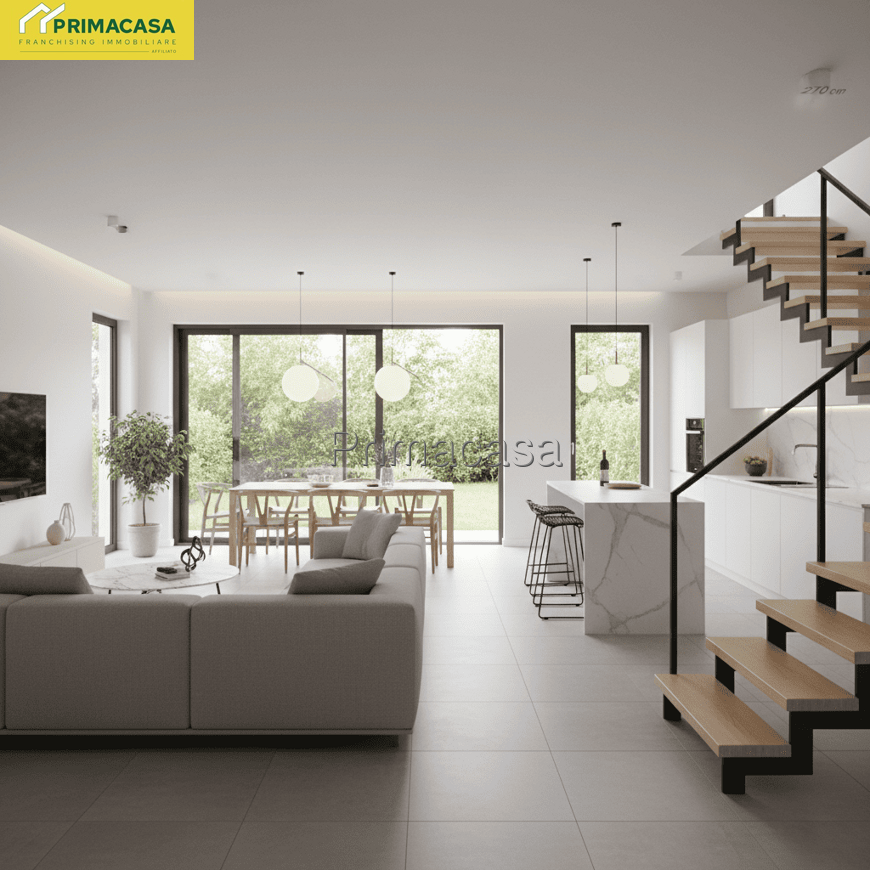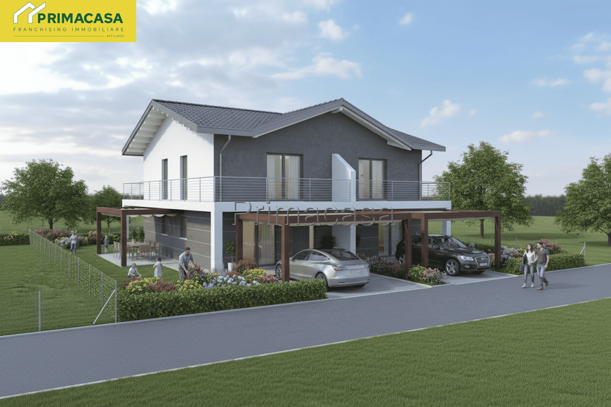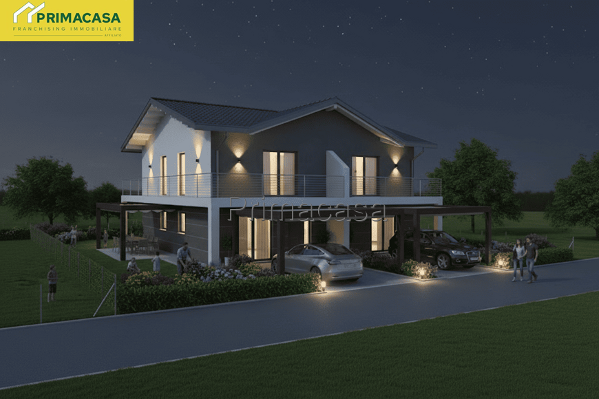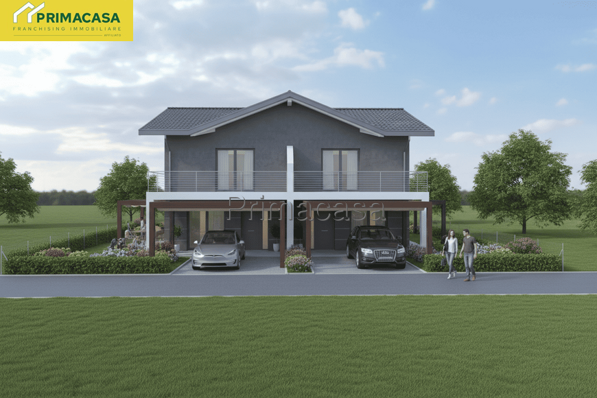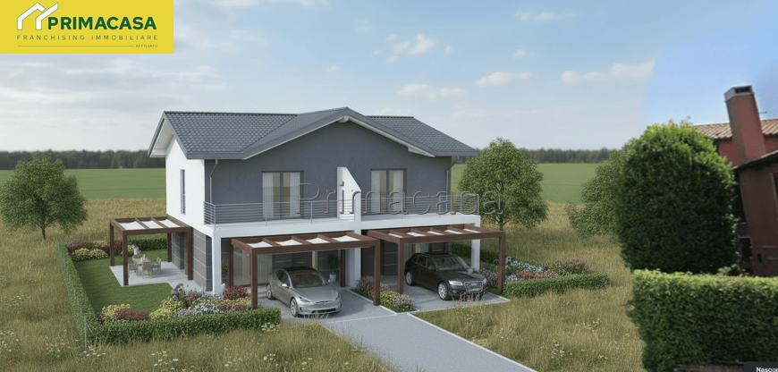 NOSTRA ESCLUSIVA. Proponiamo in vendita bifamiliare di nuova costruzione a pochi passi del centro di Caltana. La soluzione, disposta su due livelli, è così composta: al piano terra ampia e luminosa zona living con angolo cottura, lavanderia e bagno finestrato. Al piano primo due camere matrimoniali, disimpegno e ulteriore bagno. A completare giardino di 200 mq e posto auto coperto. Possibilità di personalizzare gli spazi, scegliere materiali e finiture. Per questa costruzione verranno utilizzati materiali di alto pregio e tecnologie all'avanguardia per garantire il massimo comfort e efficientamento energetico come serramenti in pvc, riscaldamento a pavimento e pompa di calore. Il prezzo della soluzione è da considerarsi al grezzo.